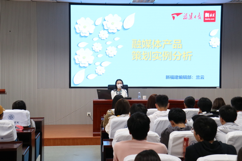 11月25日下午,福建日报社新福建编辑部主任助理兰云,在工科楼B座学苑讲坛为 成人在线 师生做了主题为《融媒体产品策划实例解析》的讲座,讲座由院长刘建萍主持,网络与新媒体系主任李馨、网络与新媒体系教师冯蔚宁和部分学生参加了讲座。