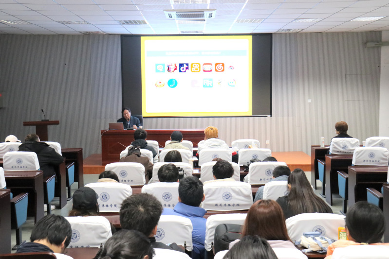 梁刚建教授以短视频强大的营销力量为切入点,详细分析了动图、网络电商、直播带货等新媒体传播方式的优势,以翔实、生动的案例说明了新媒体传播效果好、传播速度快点等特点。梁教授接着为同学们介绍了互动新闻、可视化新闻等媒体融合的方式,他认为新媒体能够制造热点,同时引领社会风尚。此外,梁教授还提到了新媒体传播中的隐私泄露问题,他向同学们强调了在从事新媒体工作的同时一定要遵守道德底线,严守职业操守。