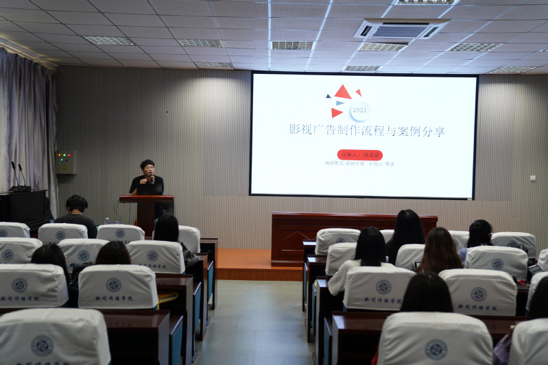 5月28日下午, 成人在线 邀请蚍蜉影视、蚍蜉片场创始人,导演汤泽涵来校作题为“影视广告制作流程与案例分享”的学术讲座。18级广告学专业及19级数字媒体艺术专业的同学到场聆听,讲座由数字媒体艺术系主任何白老师主持。