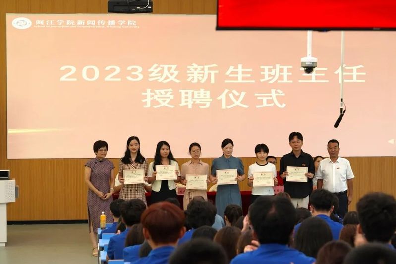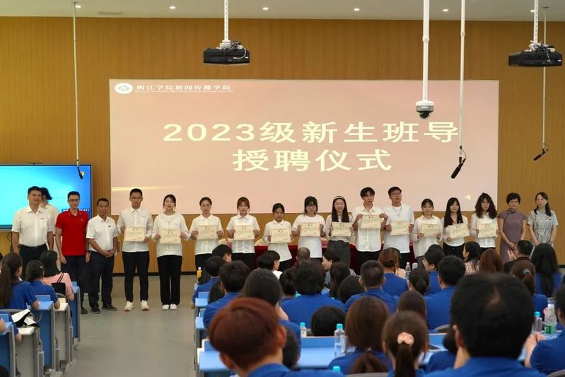 2023年9月10日, 成人在线 2023级新生开学典礼在教学楼2b106举行,新传学院党委书记陈国岱、院长刘建萍、党委副书记张林、副院长陈思达、院长助理何敏、各系主任、各班班主任、全体辅导员、各新生班导和 成人在线 2023级全体新生参加典礼。开学典礼由新传学院党委副书记张林主持。