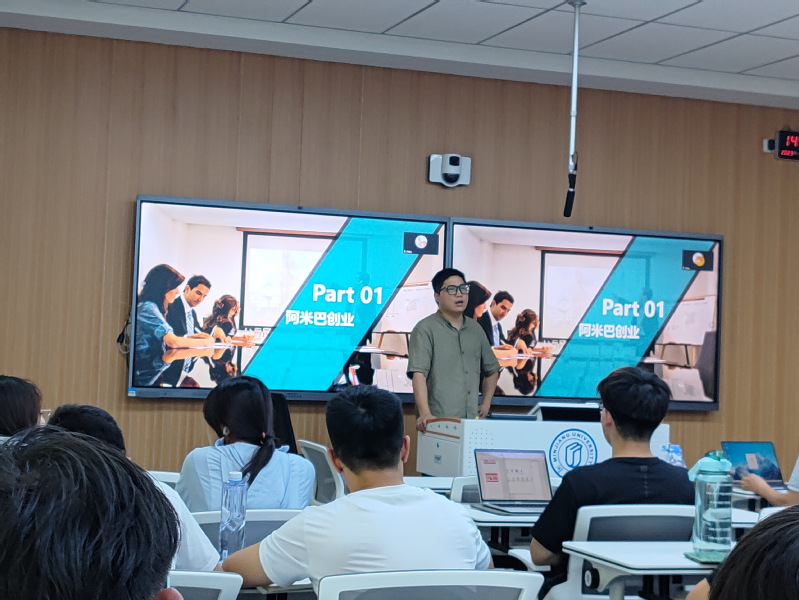本次讲坛的主讲人周锋,中创未来(厦门)股份有限公司(以下简称“中创未来”)的董事长、蚂蚁电商产业园创始人、淘宝大学万堂书院讲师以及福建省批发零售行业协会监事长。在课堂上,周锋分享了他的创业经历,通过大量身边与业界的例子探讨了阿米巴经营模式与共享办公的创新应用。