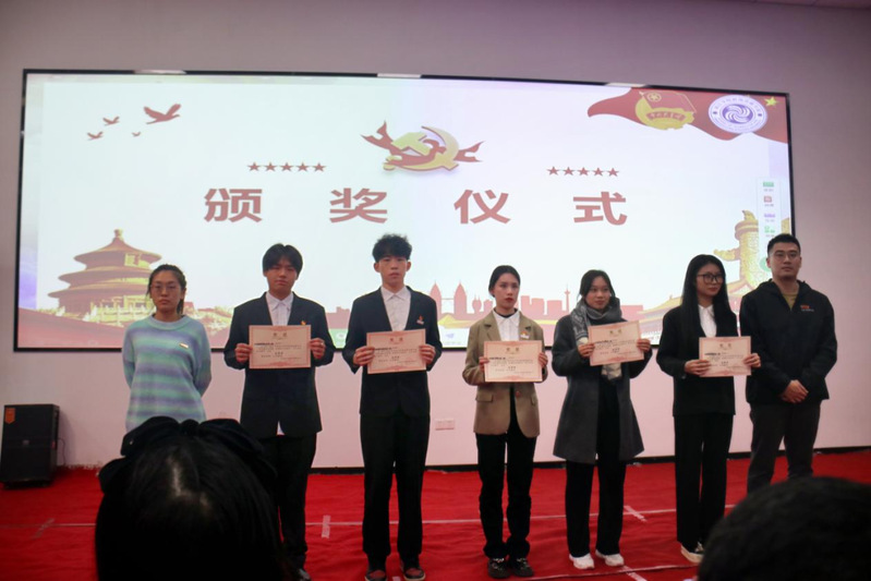 最后,主持人宣布最终获奖名单,其中2022级广告学与2022级文化产业管理团支部荣获一等奖,出席活动的老师分别为获奖团支部颁奖,并合影留念,一同记录这一激动时刻。