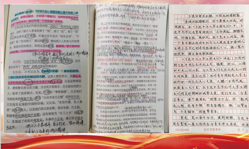 其次,以理想为马,挥鞭启程。习近平总书记曾寄语闽东大学生:“我殷切希望你们珍惜美好时光,安心学习,学有所成,早日参加建设,造福桑梓,为社会主义祖国的繁荣昌盛做出应有的贡献。”诚然,闽东改革、开放需要大批朝气蓬勃、开拓进取的青年知识分子,祖国社会主义四化建设需要一代新人。因此,我们作为新时代的青年大学生,要学习新思想,争做新青年,积极学习中华民族优秀传统文化,继承和弘扬中华民族优秀传统文化精神。我们要牢记时代使命,坚持弘扬以爱国主义为核心的民族精神和以改革创新为核心的时代精神,树立正确的世界观、人生观、价值观,明确自身目标,奋力拼搏进取,绽放青春色彩。
