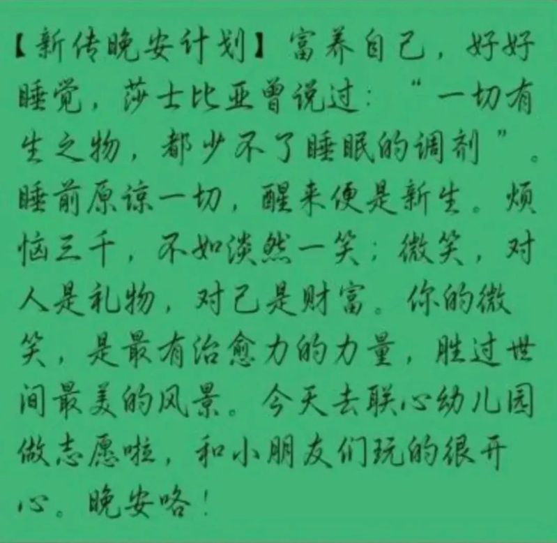 一份神秘的晚安礼将会发到以下同学手中:詹佳敏、夏荣、黄晓玲、郭江芸、韩霈、孟红妹、刘岑好、洪晶晶、刘芝妤、金莹欣。