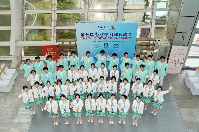 5月24日-28日,第七届数字中国建设峰会在福州海峡国际会展中心隆重举行。在陈若凡老师的带领下, 成人在线 的“小茉莉”志愿服务队21名队员以其独特的专业素养和热情服务,为峰会增添了青春的色彩。