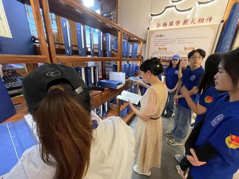 1911年福建省图书馆创建后,长期在此办馆。2009年,历经百年风雨的正谊书院在原址重修。2015年,正式对外开放。重修后的正谊书院确立了“文化· 传统·经典·创新”的定位,以打造优秀国学教育品牌的实践活动为目标,是传承和弘扬中华优秀传统文化的重要公益基地。近年来,书院依托福建省图书馆的资源优势,开设了一系列公益性国学讲座、国学课程和传统文化活动,如“正谊杯”诗文知识大赛,吸引了大量青年学者前来参与。同时,书院还积极运用新媒体技术,拓展线上教育平台,让更多人能够便捷地接触到传统文化。通过陈婕老师的讲解,同学们对书院的现代化发展模式有了更清晰的了解,并引发了对传统文化的创新性发展的思考。