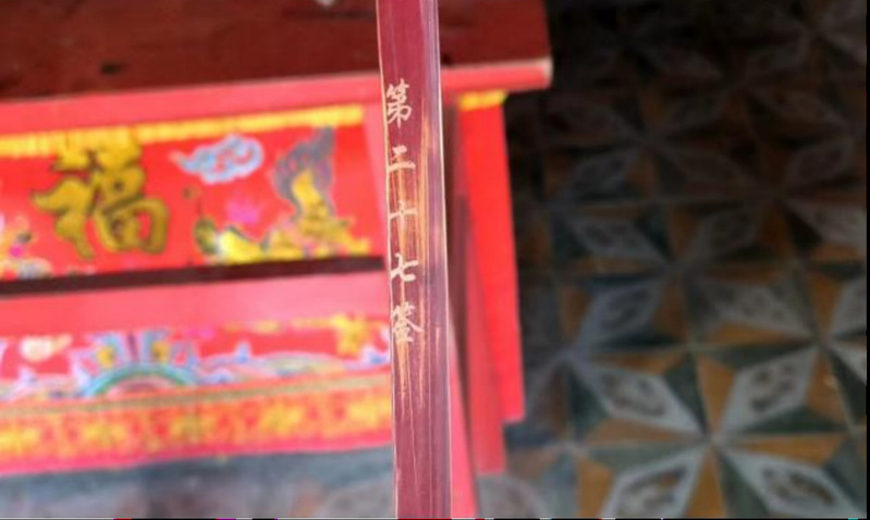 求签是感受当地民俗文化有意思的方式之一。求签人需要双手捧着签筒,跪在神明面前,心默念姓名、出生日期(农历)、住址和所求事项,诚心祷告。接着,求签人可以开始摇动签筒了,直至其中一根签落下,然后,求签人将筊杯合在掌心,再做祷告随即掷出。我掷出的筊杯呈一阴一阳,则为“圣杯”,表示所请示祈求之事神明应允。我问了有关此次社会实践的问题,抽到的是第二十七签,在一旁的观世音灵签中,属于中签,自身吉,看来此次实践应该还算顺利。
