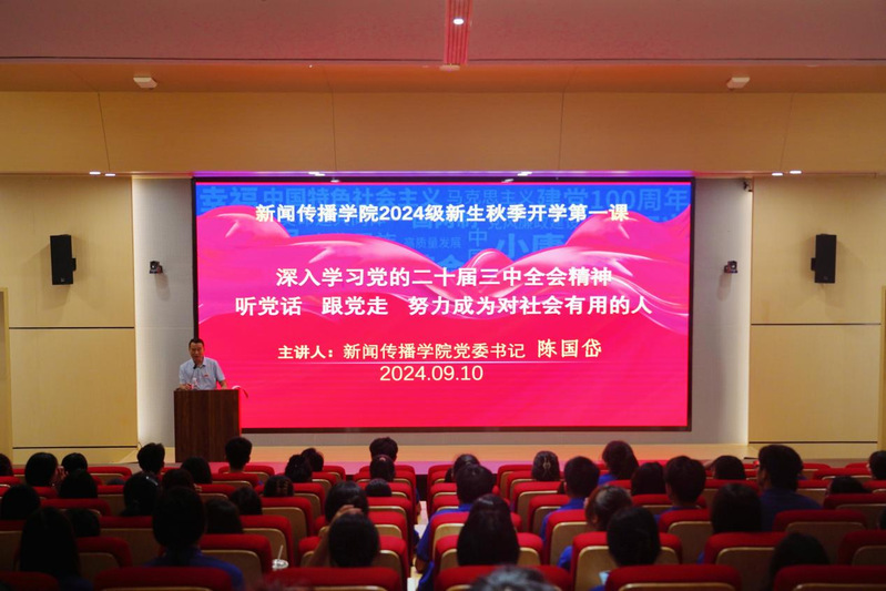 为深入学习宣传贯彻党的二十届三中全会精神,帮助新生全面了解学校办学理念和习近平总书记来校考察重要讲话精神,9月10日上午, 成人在线 党委书记陈国岱于新图书馆2楼报告厅为2024级新生讲授开学第一课。