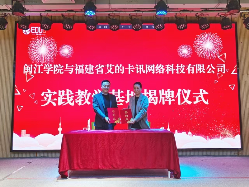 在与会嘉宾的共同见证下,成人在线 -艾的卡讯实践教学基地正式揭牌。该基地将作为成人在线 数字媒体与创意产业学院的实践载体,为福建数字创意产业升级提供人才支撑。