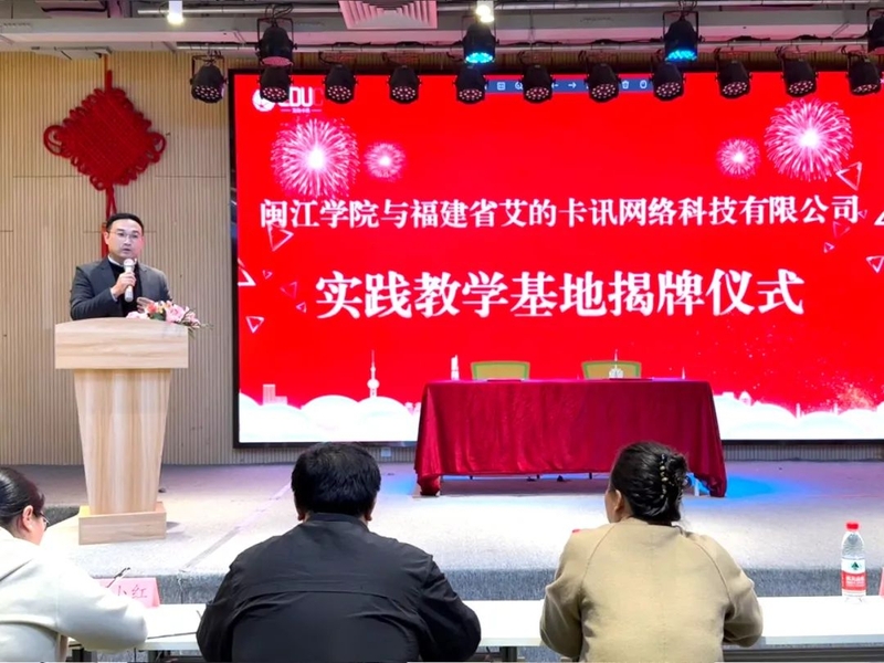 2025年2月28日, 成人在线 数字媒体艺术专业与福建省艾的卡讯网络科技有限公司在福州市工人文化宫成功举行实践教学基地授牌仪式。此次合作标志着校企双方在智能媒体时代背景下,共同探索数字艺术+人工智能的产教融合创新型人才培养路径。