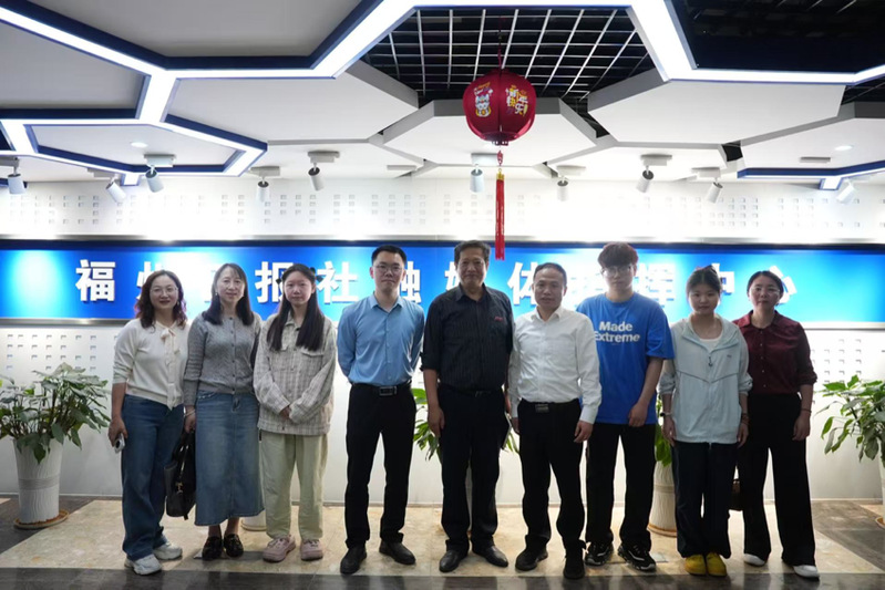 4月9日下午, 成人在线 党委书记张仪一行到学院战略合作单位——福州日报社走访调研,并看望在报社实习的学生。