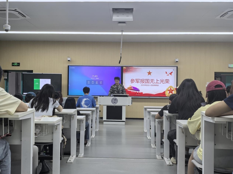 活动伊始,陈晓青老师简要介绍了本次宣传活动的重要意义,她指出,参军入伍是青年学子锤炼意志品格、实现人生价值的重要途径,希望同学们把握机遇,将个人理想融入家国情怀,积极投身国防事业。紧接着,陈晓青老师从2025年征兵的基本条件、报名流程、优惠政策这三个维度进行详细解读。