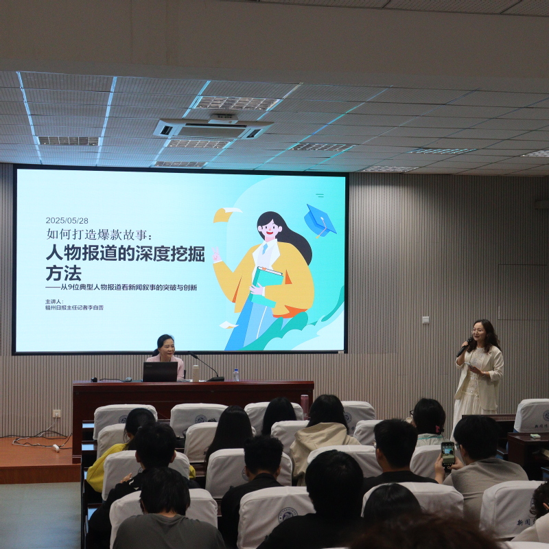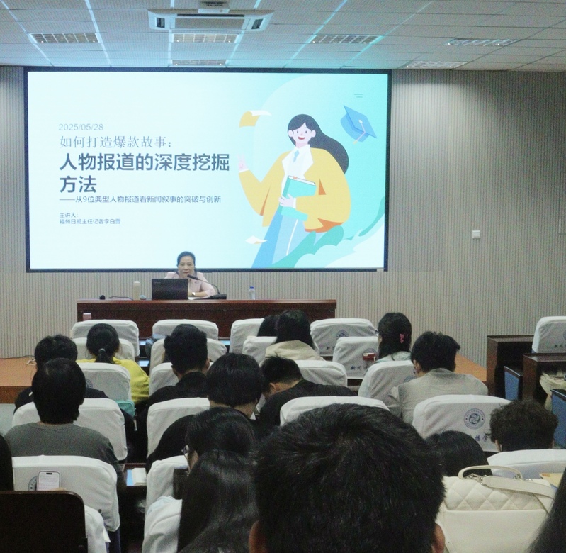 “一个人物可以反映一个时代的切面,一篇好的人物报道,可以引发一场社会共鸣。”5月28日上午,福州日报主任记者李白蕾以这样一句话开启了在 成人在线 的讲座。这场题为“如何打造爆款故事”的新闻业务讲座,吸引了网络与新媒体和广告学专业的近百名同学参加。