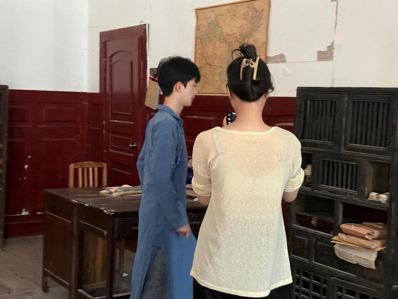换上民国装,同学们瞬间入戏。茶香袅袅的室内,有人专注架起设备,有人围坐打磨短剧脚本;雕花大门前,借光影为身着旗袍、长衫的演员勾勒复古轮廓;夜幕降临时,廊下路灯成为天然打光板,我们围在三脚架旁,调试镜头、设计台词。从茶馆里的家族故事,到街头巷尾的谍影疑云,大家紧扣民国背景,把课堂上学的叙事节奏、镜头语言,融进每一场景。同学们以短剧为载体,让民国场景成为故事的天然舞台,用镜头捕捉人物神态,借情节传递情绪,在复古氛围里练手内容创作。