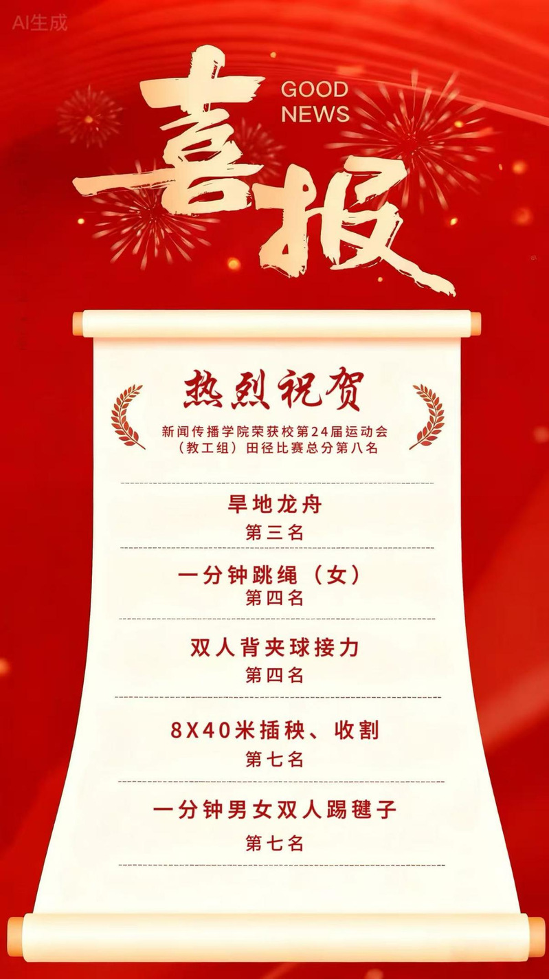 特此报喜,并向所有为院争光的教工运动员们致以最热烈的祝贺!