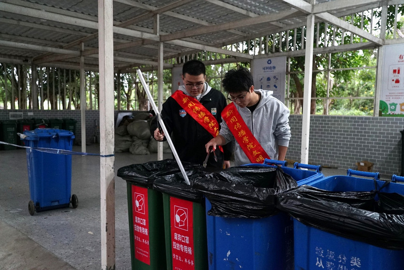 当天下午,学生志愿者们来到行合社区二号楼,在社区工作人员的指导下,学习了垃圾分类知识,掌握了正确投放方法,并协助同学进行分类。在亲手分拣垃圾的过程中,志愿者们真切感受到垃圾分类工作的细致与环卫工作者的辛劳。