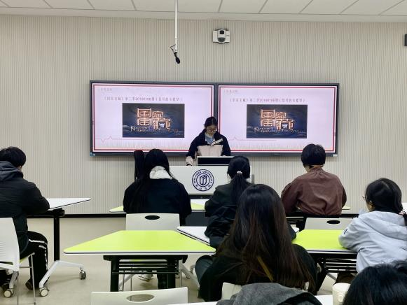 宣讲人王钰鸿的讲述先从聂耳的生平铺展:这位23岁的革命音乐奠基人,自小爱乐却在民族危亡时转身“以乐为刃”,《义勇军进行曲》《毕业歌》等数十首作品,是唤醒民众的号角。当讲到1935年他“带病赶稿却隐瞒病情”、以笔为枪的细节时,教室的呼吸都轻了,原来国歌的每一拍铿锵,都是“救亡图存”的心跳。